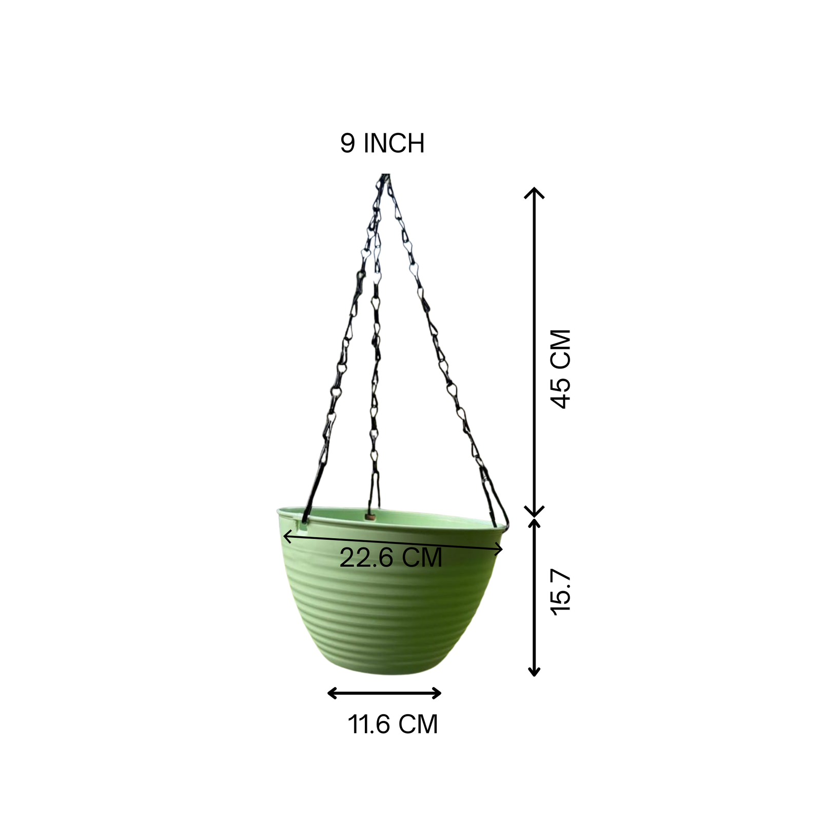 The 9 Inch Chain Hanging Plastic Pot is a sturdy and UV-resistant planter designed for balconies, patios, gardens, and indoor décor. Made from premium durable plastic, it withstands all weather conditions and provides excellent support for ornamental plants, trailing vines, and flowering varieties. Equipped with strong metal chains, these pots ensure secure hanging, while drainage holes promote healthy root growth. These lightweight yet stylish hanging planters are perfect for beautifying your home and garden.