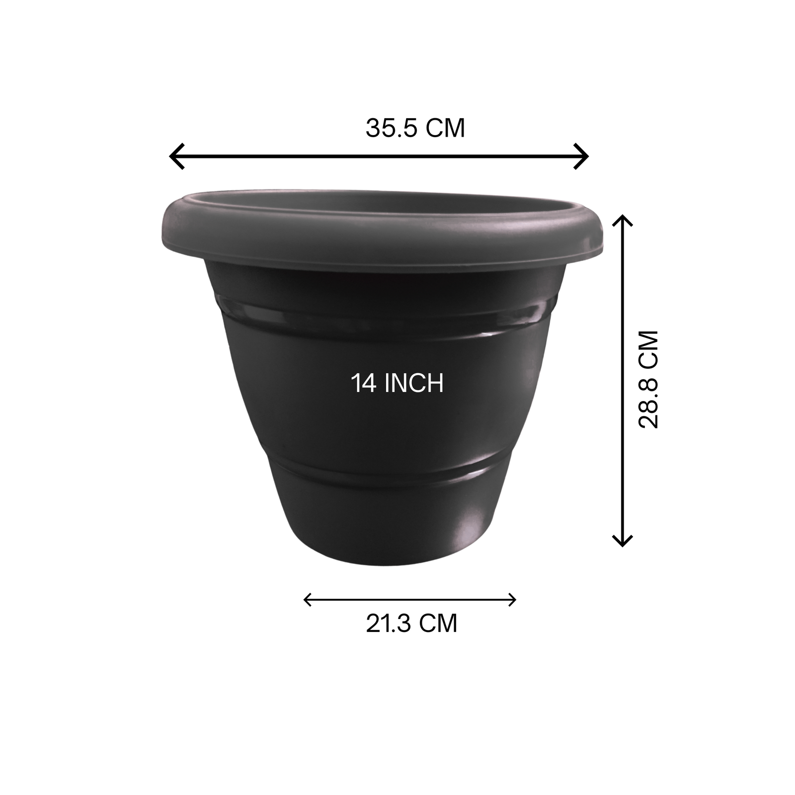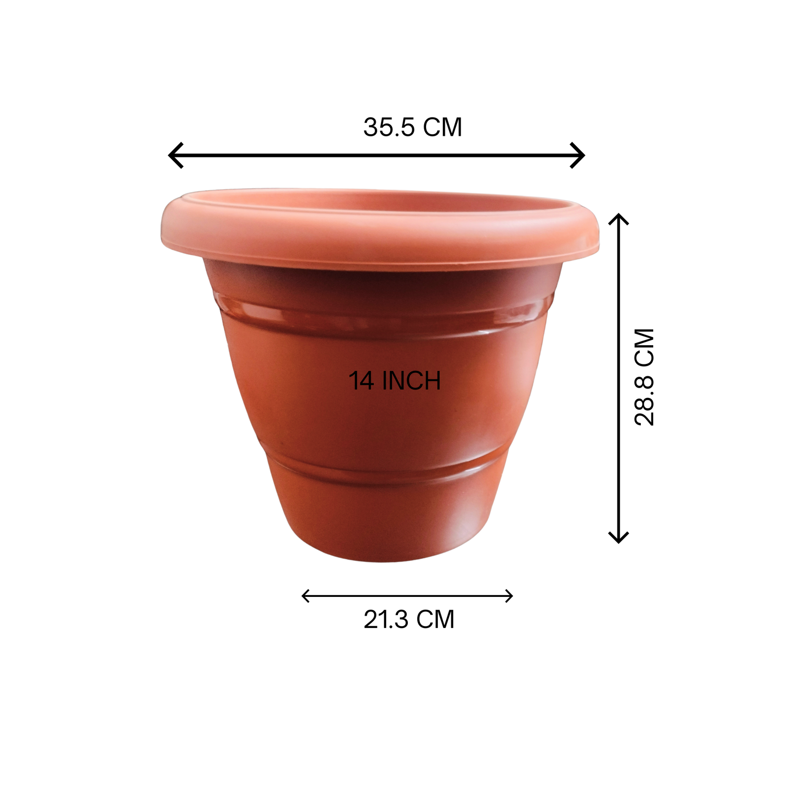 🌿 Spacious 14 Inch Size: 35.5 cm top dia × 21.3 cm base width × 28.8 cm height – ideal for medium to large plants.